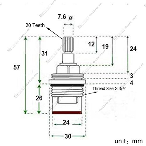 20 spline 3/4″ Quarter turn ceramic disc insert – please check dimensions in photo to ensure compatibility
