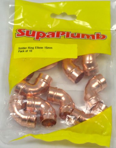 SupaPlumb Pack of 10 Plumbing Solder Ring Elbow – 15mm