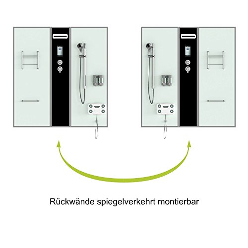 Limnos 170 cm x 90 cm x 220 cm shower system, Whirlpool & Radio Waterfall, massage, Colour Light Therapy, Seat, soap dispenser, glass shelf and shower head